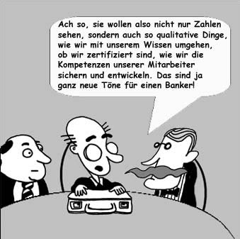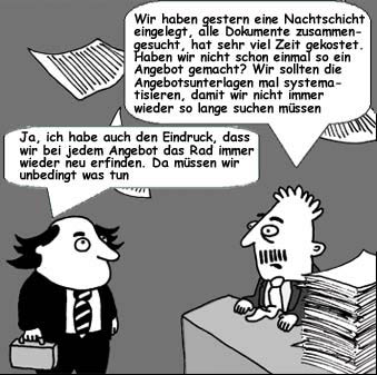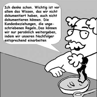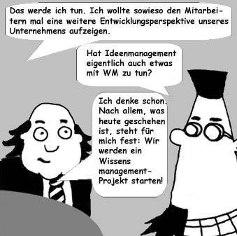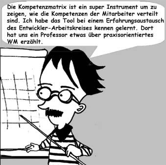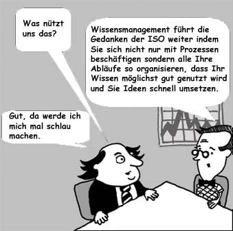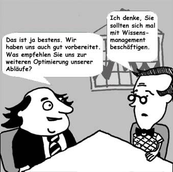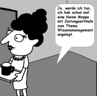 Comic Wissensmanagement, brauchen wir das? Schlaumeier und Querdenker zeigen Ihnen wie und warum. Grafik: Véronique NoconText: Klaus North