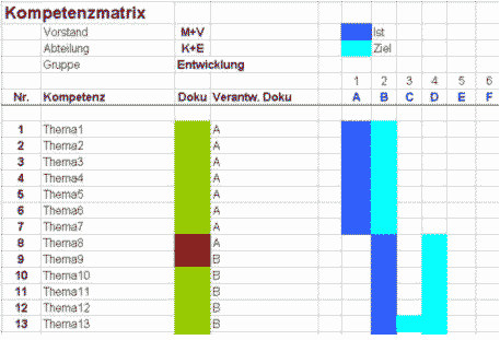 Kompetenzmatrix wurden Defizite bei der Abwesenheitsvertretung und Risiken