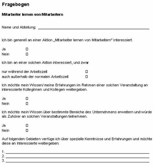 Fragebogen „Mitarbeiter lernen von Mitarbeitern“