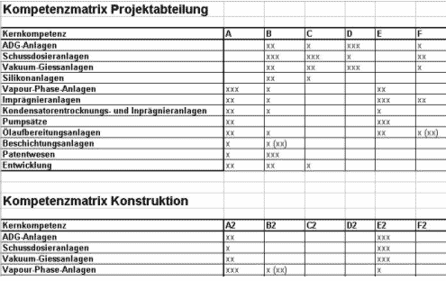 Hierzu werden mit Hilfe von Kompetenzmatrizen für jede Abteilung