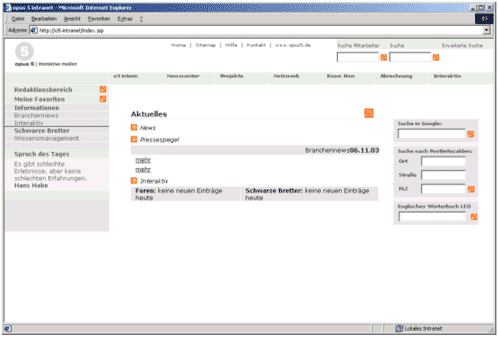 opus 5 setzt seit der Gründung 1995 ein Intranet ein, in dem alle