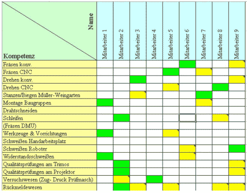 Hier sehen Sie einen Auszug aus unserer Kompetenzmatrix: